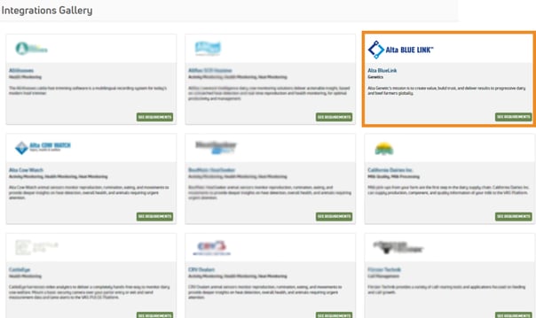 Step 3. In the Integrations Gallery find Alta BLUE LINK and click the button to See Requirements.