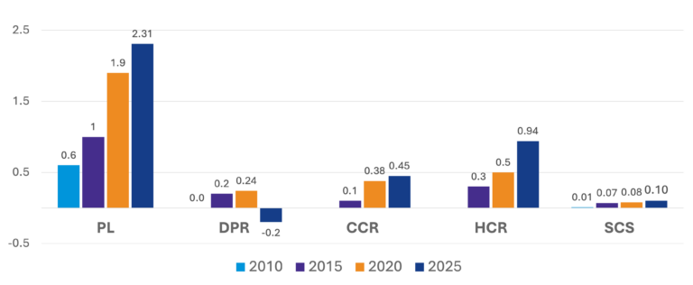The charts below show the base change numbers for 2025, 2020, 2015, and 2010. As you can see from the charts, the base change in 2025 is significantly more for most traits than it was for previous base changes.